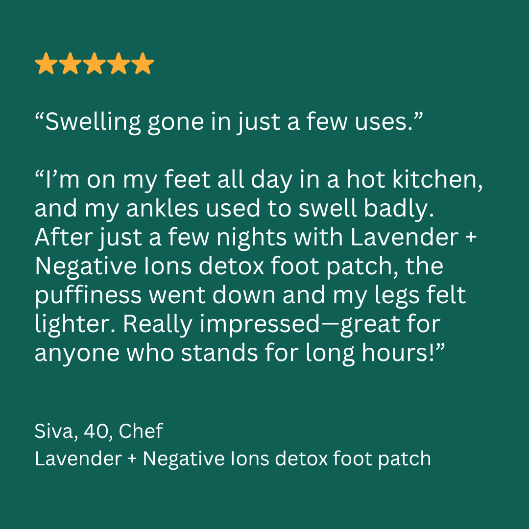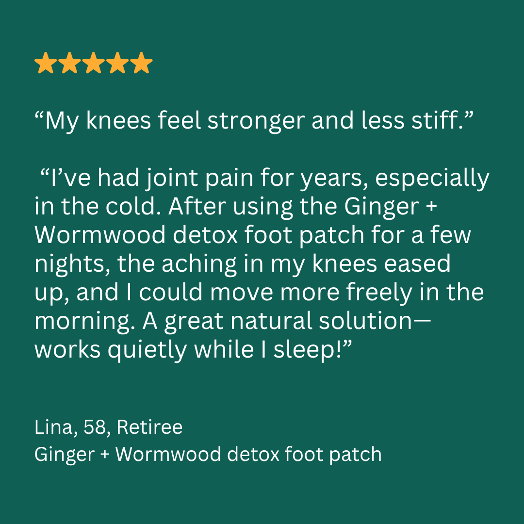 Our Detox Foot Patch series is crafted to support your body’s natural detox process overnight. Using time-honoured herbs like ginger, wormwood, lavender, green tea, and bamboo vinegar, each patch gently draws out impurities, reduces swelling, improves circulation, and helps you feel lighter by morning.